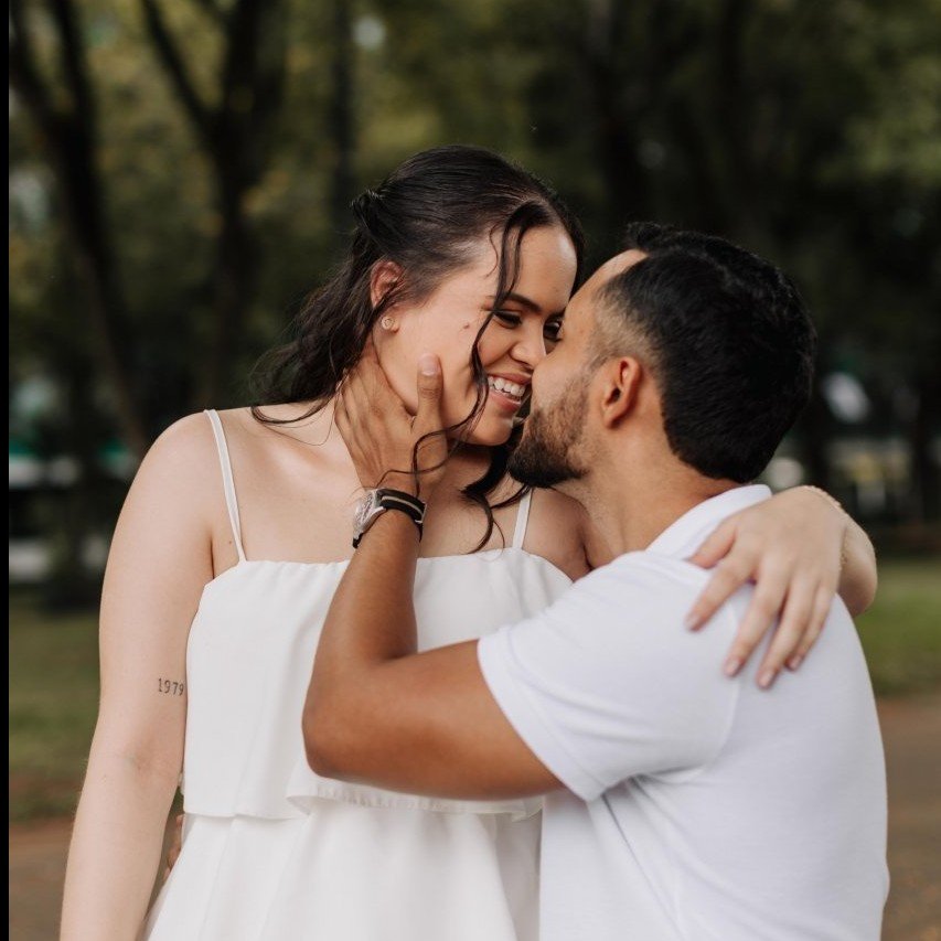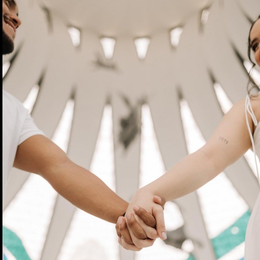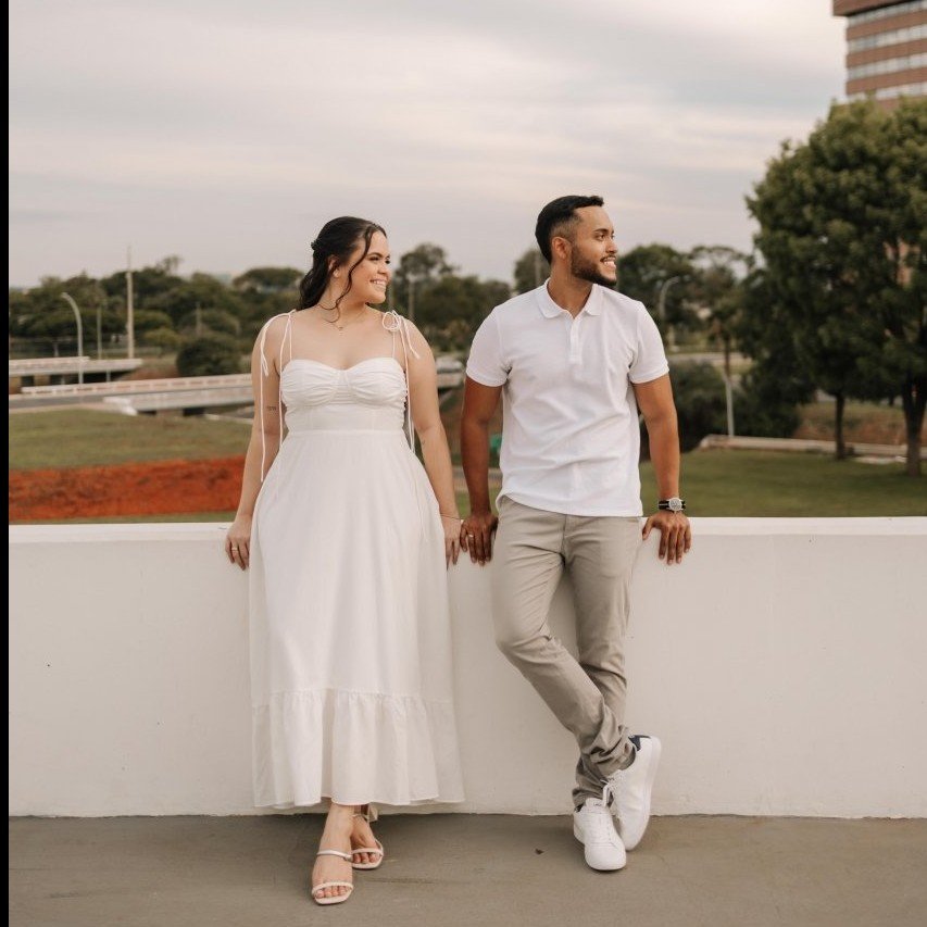 São mais de três anos de um amor que equilibra opostos: a calma dele encontra a intensidade dela; o riso solto dela repousa na serenidade dele. Amamos aventuras, viagens e caminhos que aceleram o coração. Já voamos alto, entre o céu e a adrenalina, mas foi na calmaria do cotidiano que entendemos o que realmente importa: escolher ficar.